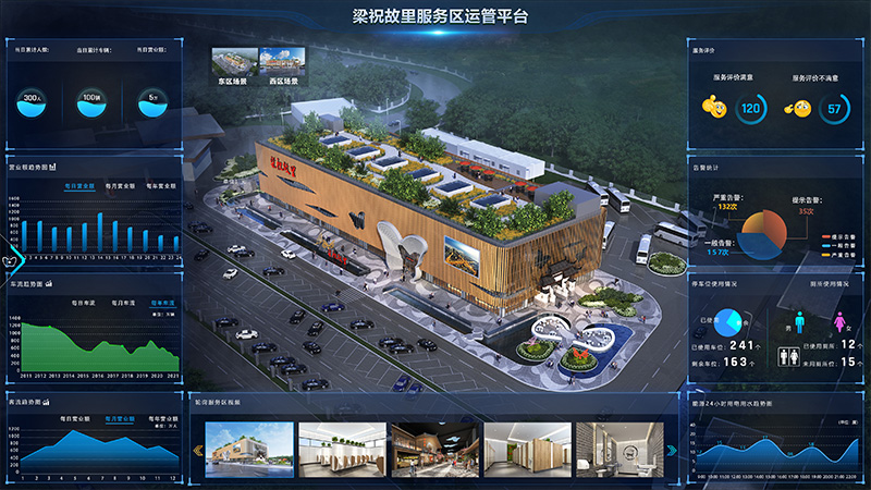 产品亮点:数字孪生服务区、商业营销分析、容量监测、安防监控、安心停车、业务协同。