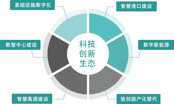 围绕基础设施数字化、数智中心建设、智慧高速建设、智慧港口建设、数字新能源、信创国产化替代六个方面打造企业科技创新生态。